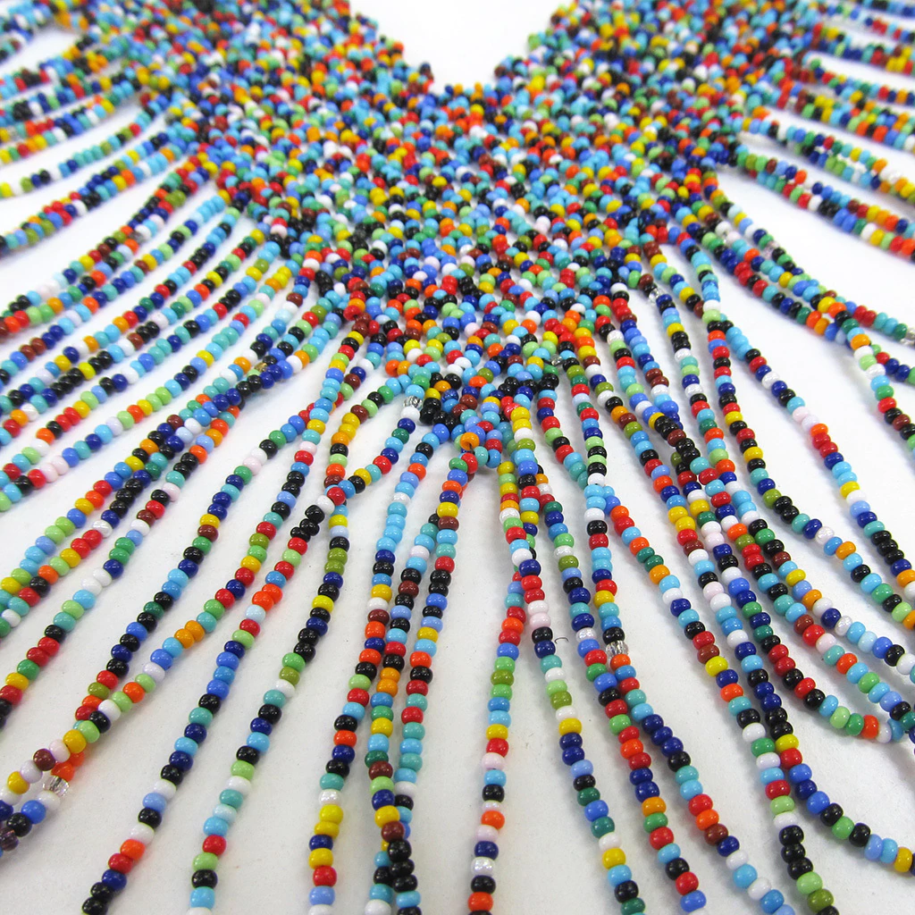 Collar "okama embera" artesanal de mostacillas (diseño largo) la comunidad indigena amazonica colombiana de 35cm (largo hasta hombros) y 44cm de largo total. Pieza unica y ancestral.